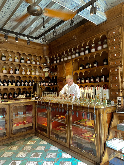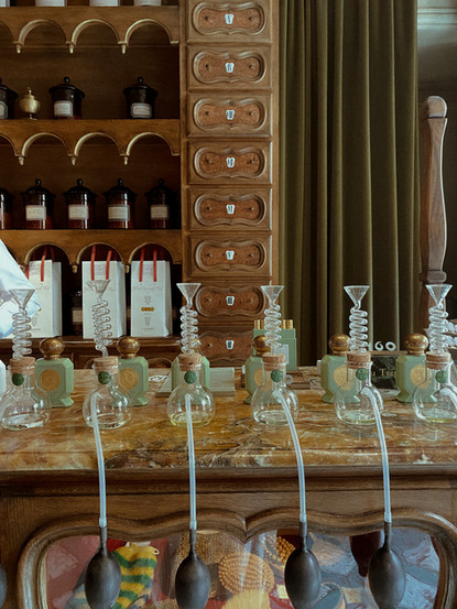 It seems that each time we visit Paris, a stop at Officine is in order. It has become a sort of ritual and going home without a personalized calligraphy, gold foiled marbled box to fret over during airport security seems like something is missing. What Ramdane Touhami created is a masterpiece, a source of great inspiration to me. Somehow he revived a historical brand and in under 10 years, created an empire and a most beautiful world to get lost in. Officine is not a museum, but it is a portal to an old world which time traveled to modern Paris. Not to forget to mention, their fragrance is a true favorite - I love their classic Rosé Damask and most recently Abe gifted me their recent release of Cucumbre mint, it's heavenly.